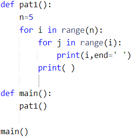 Python: Patterns Posted byHiral AroraApril 3, 2023April 5, 2023Posted inPython 1. Pattern1 Output 2. Pattern2 Output 3. Pattern3 Output Share this: Click to share on LinkedIn (Opens in new window) LinkedIn Like Loading... Related
