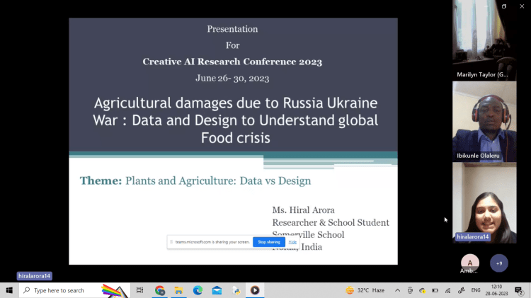 Presented Research work titled “Agricultural damages due to Russia Ukraine War : Data and Design to Understand global Food crisis” in the Creative AI Research Conference 2023 under the Plants and Agriculture: Data vs Design category. Participated as a panel member as well which was a wonderful and thrilling experience.